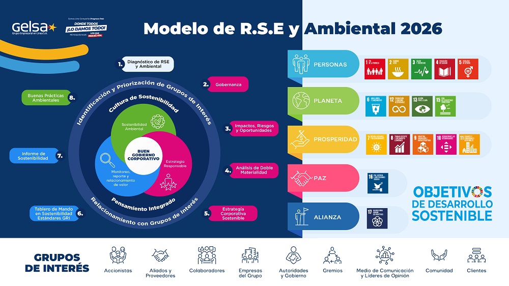 Desarrollamos programas y proyectos a largo plazo para revitalizar nuestras buenas prácticas y contribuir con el crecimiento económico, desarrollo social y protección ambiental en Colombia, con el fin de generar valor compartido para Grupo Gelsa y la sociedad.